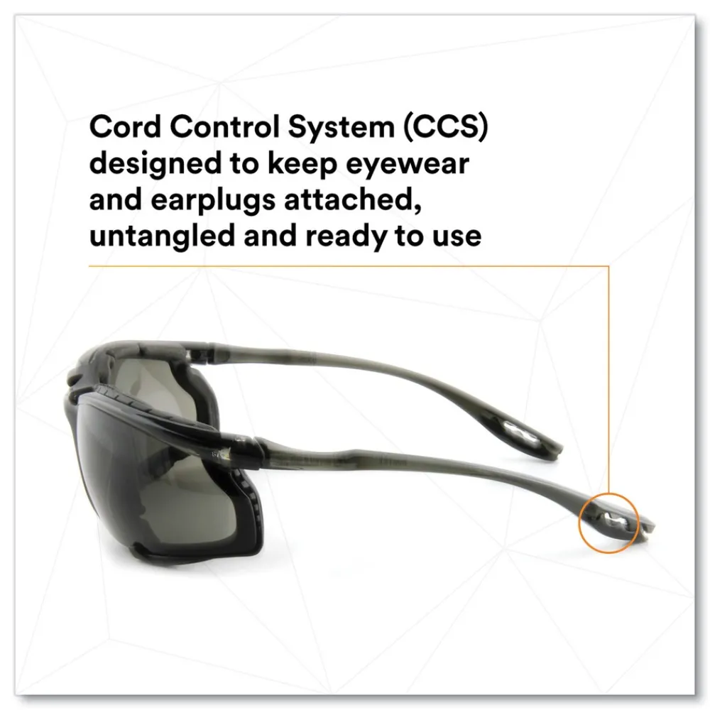 Virtuaâ„¢ CCS Protective Eyewear is designed to keep eyewear and earplugs attached, untangled, and ready to use. Offering style, protection, and affordability, this eyewear comes with an optional foam gasket attachment that helps limit eye exposure to dirt and debris while providing added comfort and cushioning.
