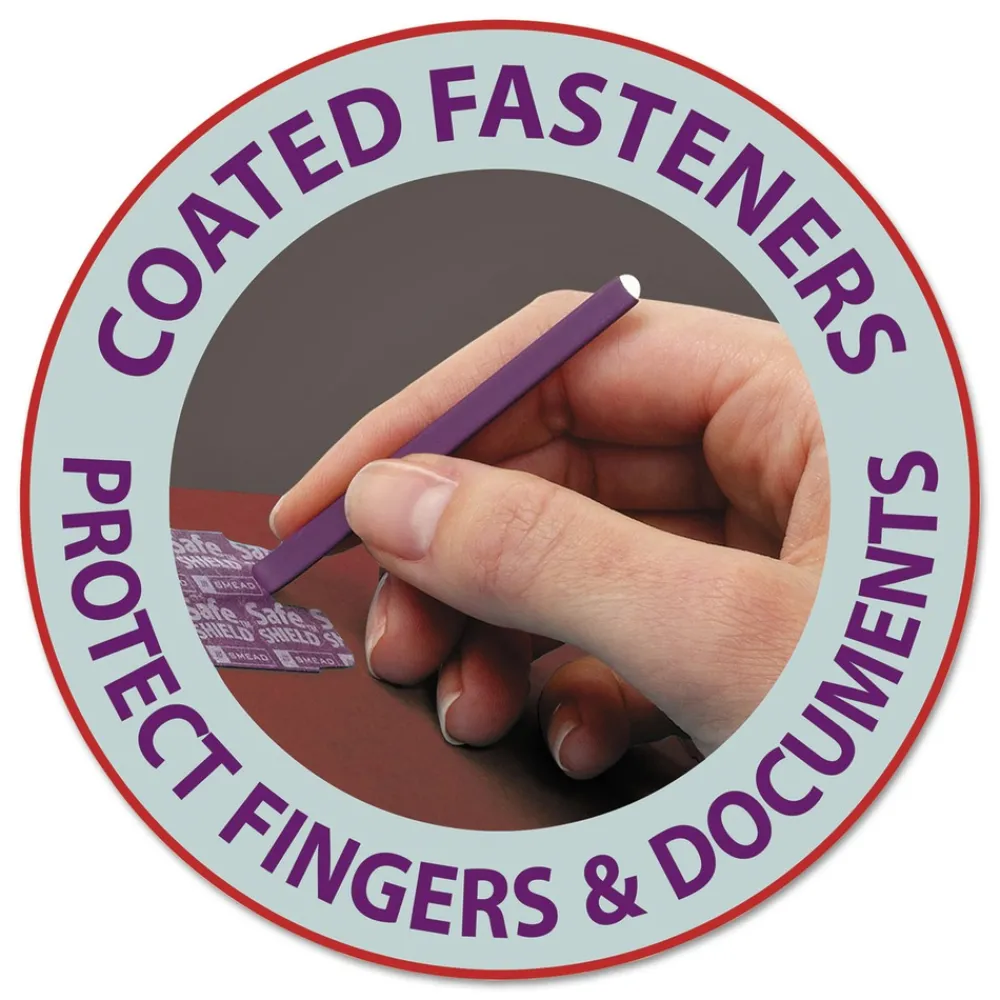 Partition folders with patented SafeSHIELD coated fasteners help prevent finger cuts, eliminate paper tears and reduce excessive fastener crinkling