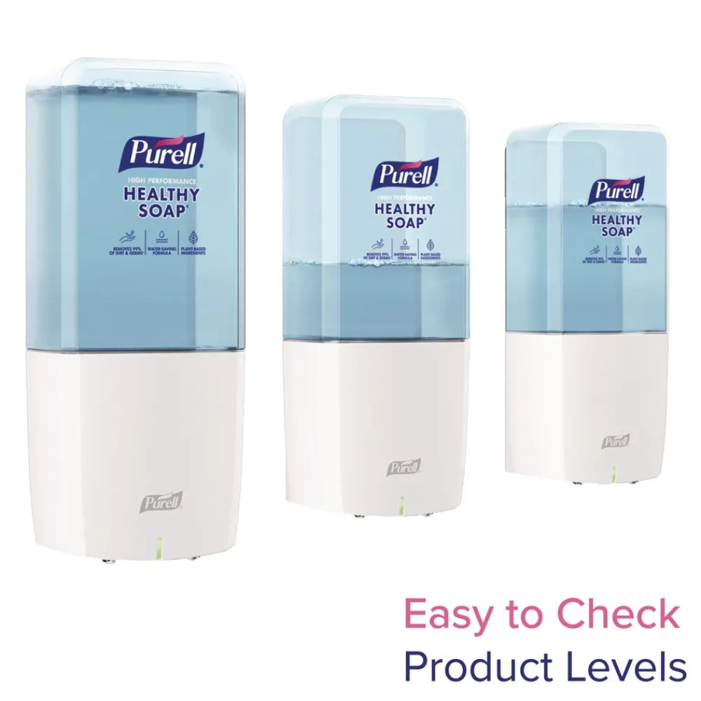 PURELL ES10 Automatic Hand Soap Dispenser requires less maintenance thanks to a fresh battery built into every refill, so you never have to change or buy batteries! Transparent refills make it easy to check product levels without opening the dispenser. Each refill has 30% less plastic and 38% lower greenhouse gas emissions for less waste. Refill bottle, collar and AA battery are easy to pull apart and recycle. Its slim profile fits in tight spaces, and it quietly dispenses highly effective, rich foam hand soap, delivering more ways to impress.