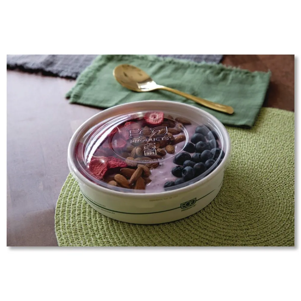 Choose Eco-Products Compostable GreenStripe PLA-Lined Paper Food Containers for a sustainable solution to food service. These disposable containers are made from renewable, plant-based materials and are designed for easy composting. They offer convenience for high-volume needs and are compatible with available lids to keep contents secure. These containers meet rigorous standards for compostability and sustainability, making them the ideal choice for your business.