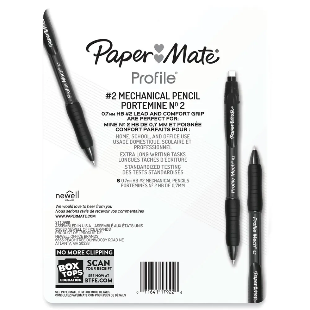 Paper Mate Profile Mech Mechanical Pencils combine the look and feel of a pen with the performance and versatility of a pencil, so you stay sharp during any writing task. They feature a comfortable grip that helps you keep writing until the job is done. These pencils contain 0.7 mm HB #2 pencil lead, making them great for school, home, or the office and perfect for standardized testing.