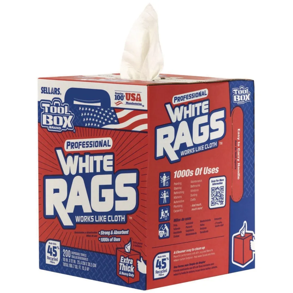 Tackle any job, anywhere, with TOOLBOX White Rags. From paint splatters to greasy spills, these super-absorbent wipes are the ideal solution for hundreds of applications in and around your home or business.