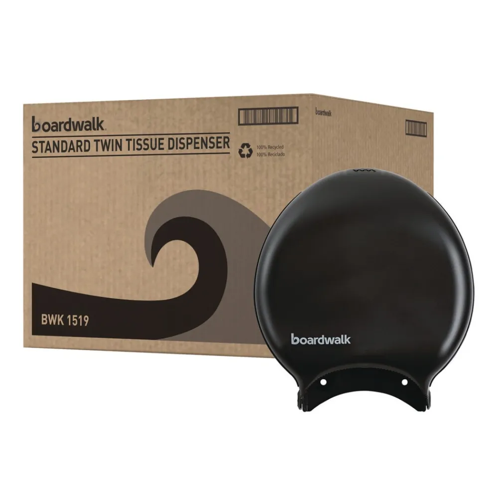 Accepts one jumbo roll of toilet tissue such as Boardwalk or Windsoft