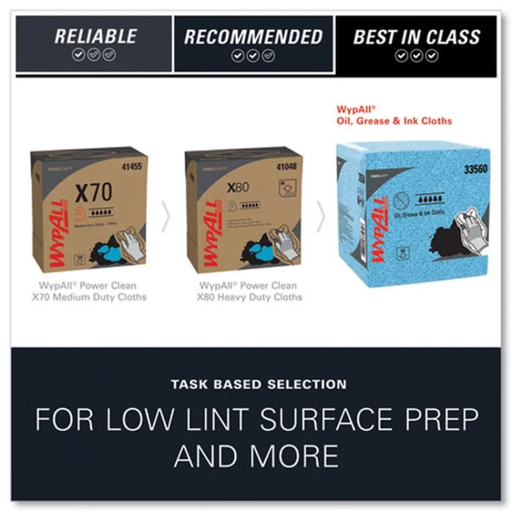 WypAll 33560 12.5 in. x 12 in. 1/4 Fold Grease and Ink Cloths Power Clean Oil – Blue (66/Box, 8 Boxes/Carton)