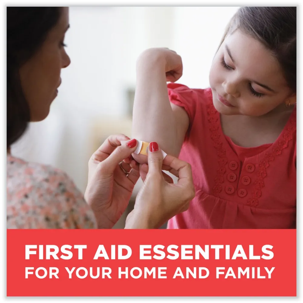 Includes a variety of Band-Aid Brand Adhesive Bandages in assorted sizes for minor wound care, as well as Band-Aid Brand First Aid Products such as gauze, non-stick pads and tape for larger minor wounds, all organized in a durable and accessible box