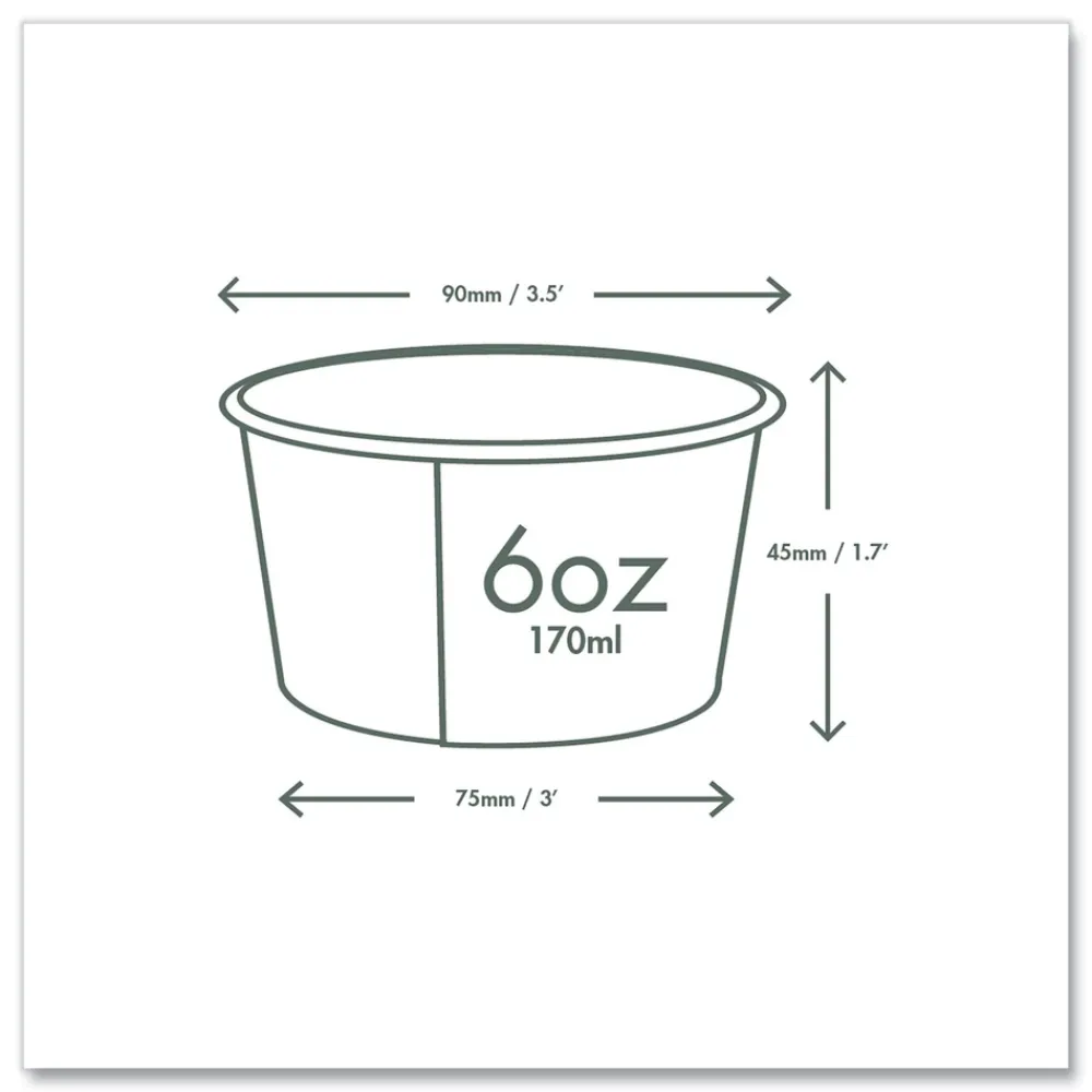 (1000/Carton) 3.5 in. x 1.7 in. 6 oz. Compostable Paper Soup Containers – Green/White – SC06G