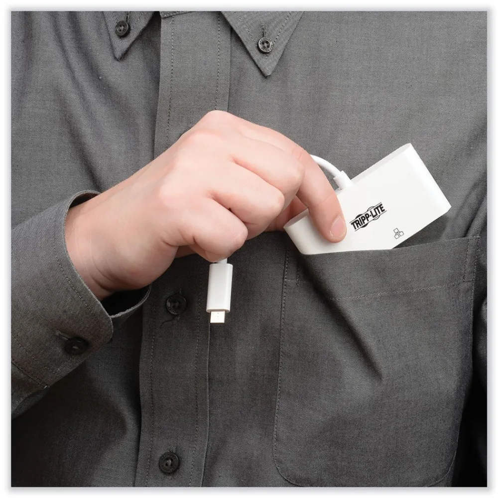 Tripp Lite U444-06N-HGU-C 3 in. USB-A/USB-C PD Charging/Gigabit Ethernet USB 3.1 Gen 1 USB-C to HDMI Adapter – White