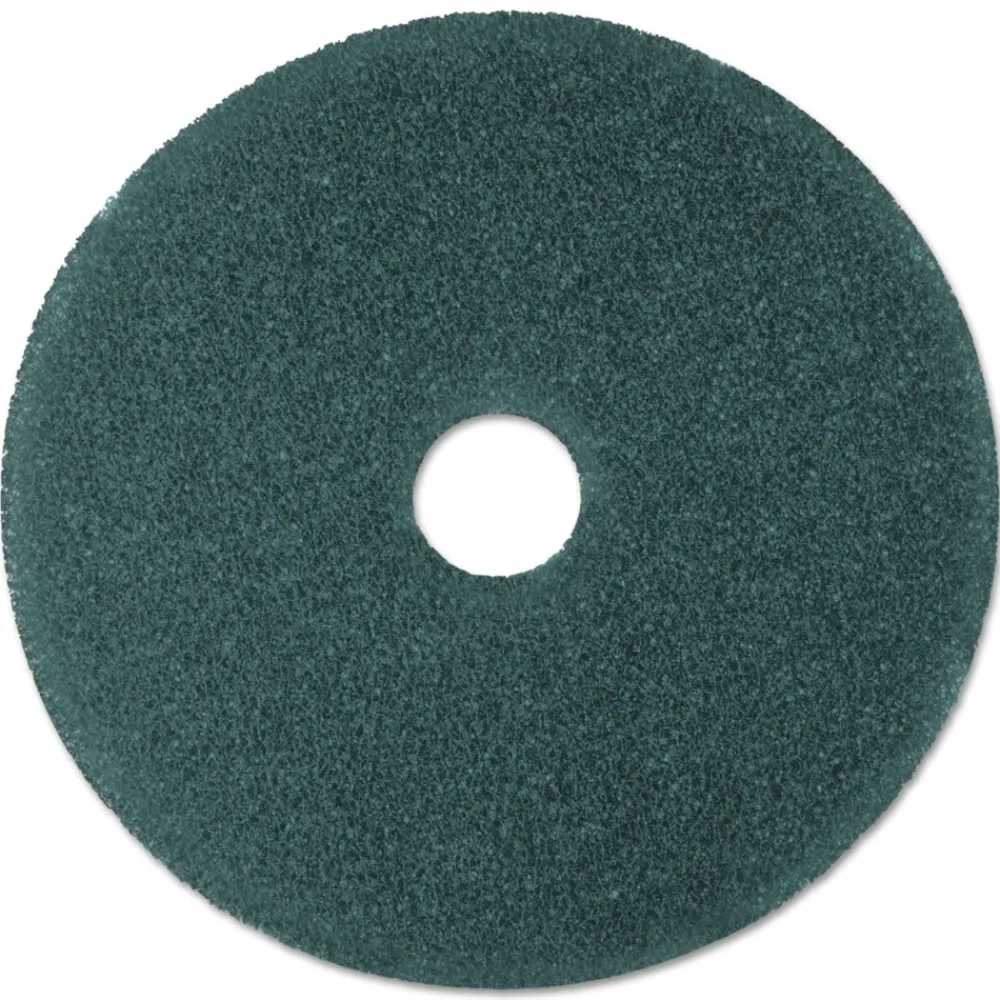 3M Blue Cleaner Pad 5300 is designed to remove worn finish, soils, scuffs, and spills and to prepare surfaces for recoating. The pad is constructed of high quality nylon and polyester synthetic fibers in a non-woven web. A durable resin coating system permeates the fibers throughout the pad with abrasive cleaning particles, providing consistent performance over the life of the pad. The resin coating will not be significantly affected by water, detergents, and cleaners normally used for floor maintenance. The floor scrubbing pad is reversible. Depending on the surface and application, the floor pad can be used with detergent solutions for dry scrubbing floors, and in heavy duty spray cleaning operations.