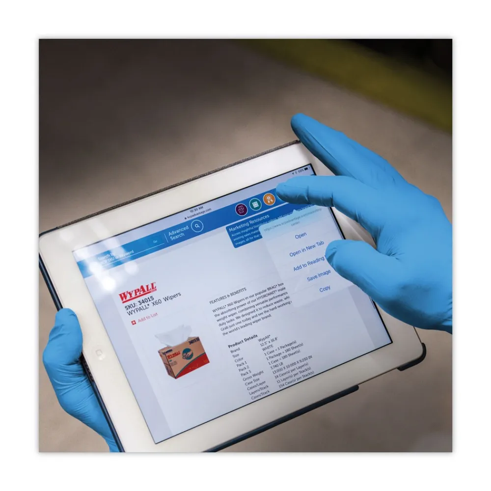 KleenGuard Personal Protective Equipment (PPE) enables rather than inhibits allowing for maximum productivity and safety for you and your employees. Your employees are your most valuable asset, and KleenGuard G10 2Pro Nitrile Gloves help keep them safe. Your employees can use them with confidence. Thanks to the smart design, these powder-free, ambidextrous, touchscreen compatible blue nitrile feature a 6 mil thickness for both comfort and protection. The textured fingertips give employees a grippable surface for dexterity while performing sensitive tasks. The beaded cuff helps prevent roll-down and makes the gloves easier to don. these gloves are available in a variety of sizes, are 9.5 in. long and are not made with natural rubber latex. These blue nitrile gloves are a leading choice across a variety of industries because they are comfortable to wear, provide excellent tactile sensitivity and deliver reliable protection for the task at hand. KleenGuard G10 2Pro Nitrile Gloves meet US FDA regulations for food contact applications. In addition, these gloves are recyclable through The RightCycle Program by Kimberly-Clark Professional. Making the right Personal Protection choice is difficult. Perform with distinction with KleenGuard Personal Protective Equipment (PPE).