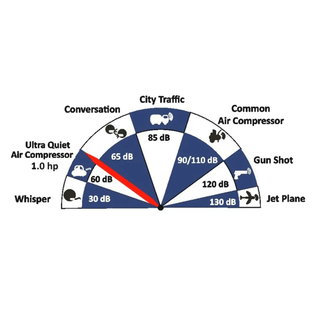 Designed to be one of the quietest air compressors in the industry having only 60 decibels of sound