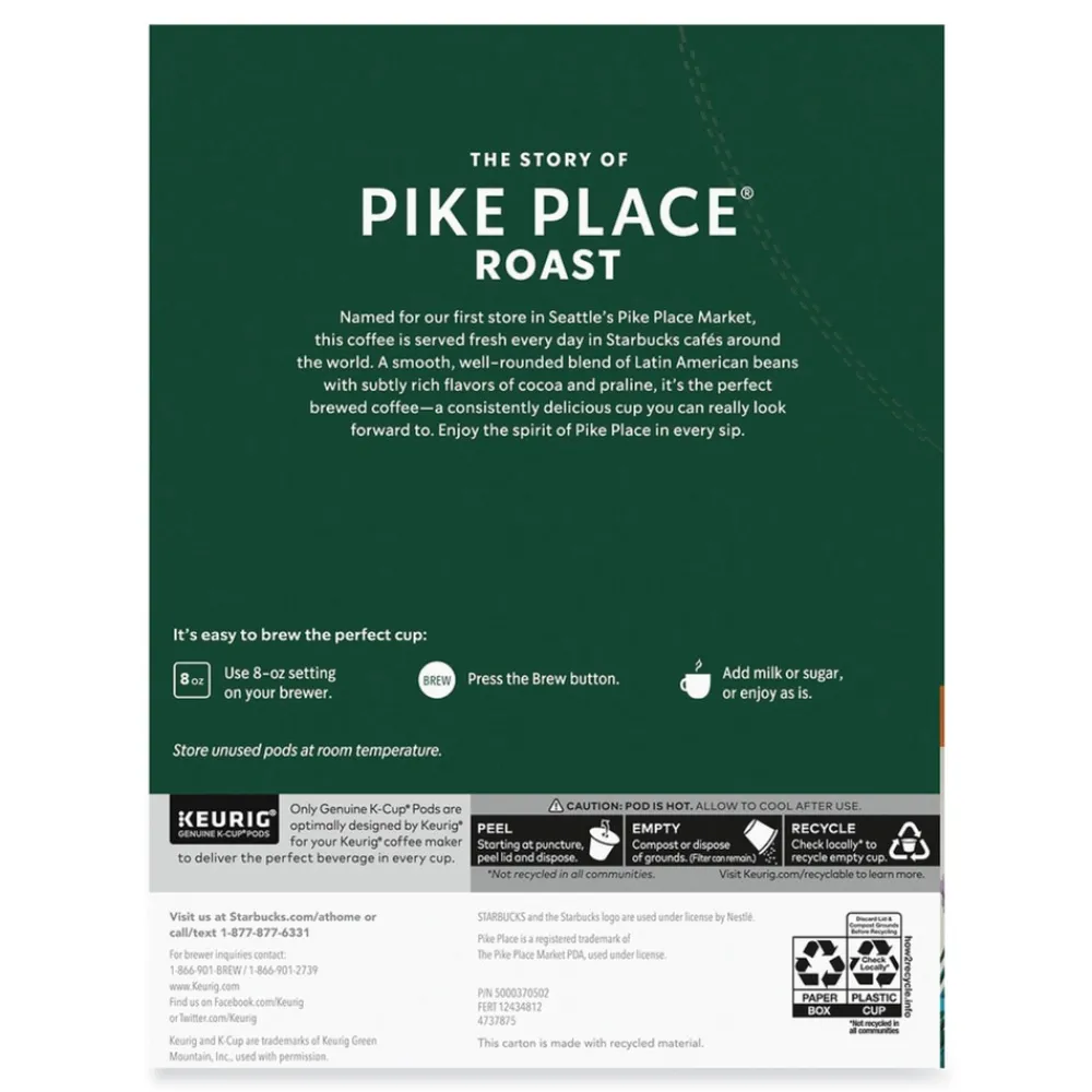 Starbucks 12434812 Coffee K-Cups Pack – Pike Place (96/Carton)