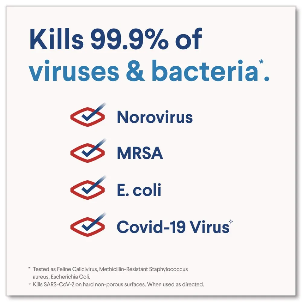 This cleaning bleach kills 99.9% of germs and bacteria including norovirus flu virus MRSA, E. Coli and Salmonella left on surfaces with cleaning and disinfecting power