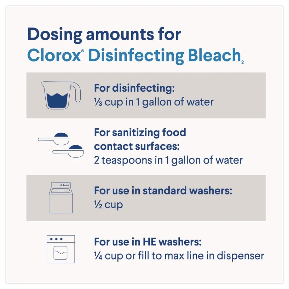 Get more cleaning power per drop with this concentrated formula with 33% more compact dose reducing the amount required for cleaning (compared to Clorox Disinfecting Bleach2).
