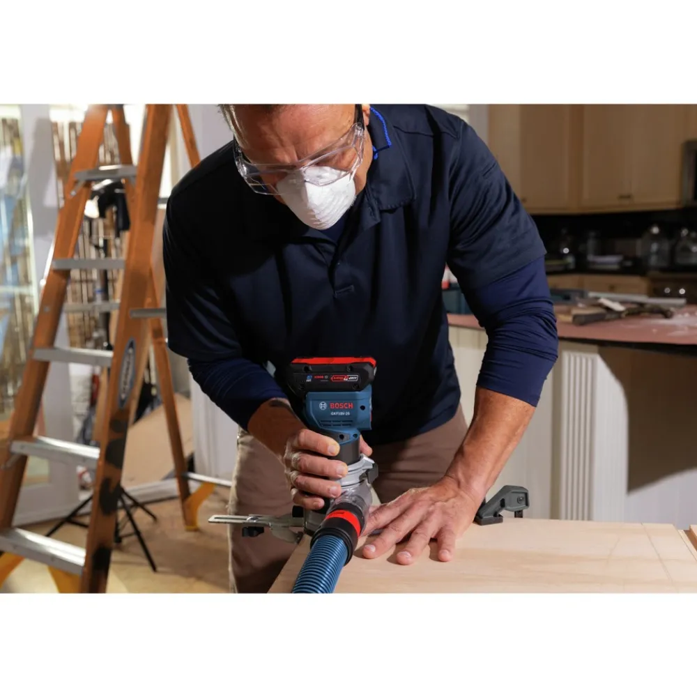 Experience optimal performance and portability with the Bosch GKF18V-25 18V Brushless Colt palm router, a cordless solution with the best power-to-size ratio in its class. Featuring an efficient brushless motor that produces 1.39 peak horsepower and spins at a variable speed of 10000 to 30000 RPM, this router is ideal for precise edge forming on tables and windowsills, as well as more demanding surface routing and OSB flush cutting. The compact, ergonomic design features both high and low soft gripping positions for added comfort and control during vertical and horizontal applications. The router’s depth adjustment system allows for rough and fine depth adjustments in 1/64 in. increments, with a max depth cut of 1-11/32 in. for precise and customizable woodworking results. The simplified flip-and-release spindle lock lever helps ensure a quick and efficient bit change process while on the job. For added convenience and flexibility, the GKF18V-25 Colt palm router is fully compatible with all previous corded Colt (PR20) accessories. Keep dust at bay with two vacuum adaptors and a chip shield that deliver effective extraction for both edge and surface routing applications. Equipped with drop detection, the router automatically shuts off upon detecting a fall. Additionally, restart protection prevents the router from accidental startup when switching batteries. Benefit from greater control with the router’s soft-start circuitry and convenience motor brake features. Workers can elevate their routing experience with the freedom and versatility of the cordless Bosch GKF18V-25 18V Brushless Colt palm router.