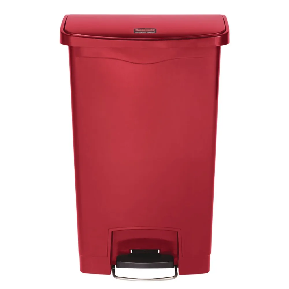 Rubbermaid Commercial 1883564 Streamline 8-Gallon Front Step Style Resin Step-On Container – Red