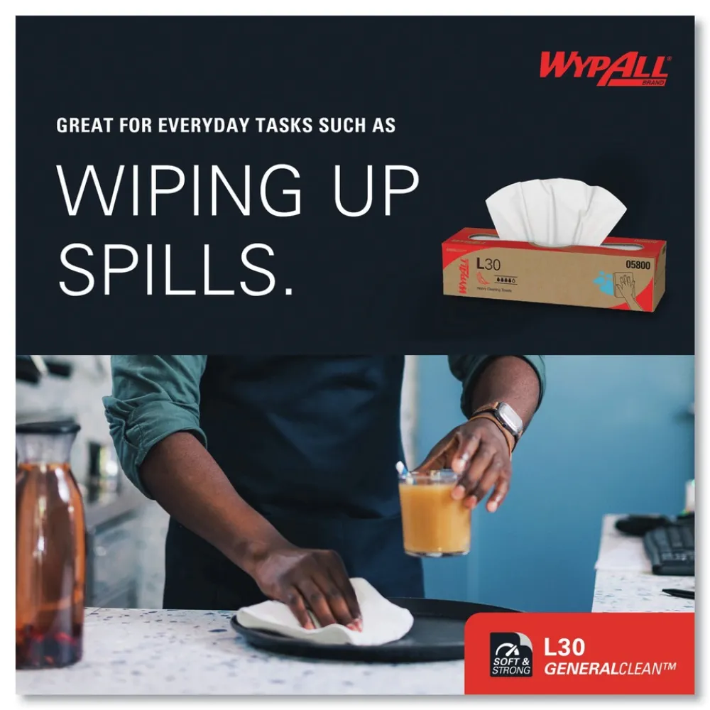 WypAll 05800 L30 POP-UP Box 16.4 in. x 9.8 in. Towels – White (100/Box, 8 Boxes/Carton)