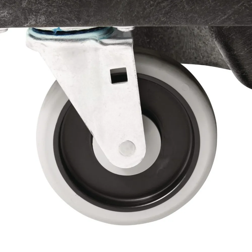 Molded tilt truck can be easily maneuvered by one person. Non-scuff casters won’t mark floors. Bin is easy to clean; minimal maintenance. Fits effortlessly onto service elevators. Optional domed lid is available.