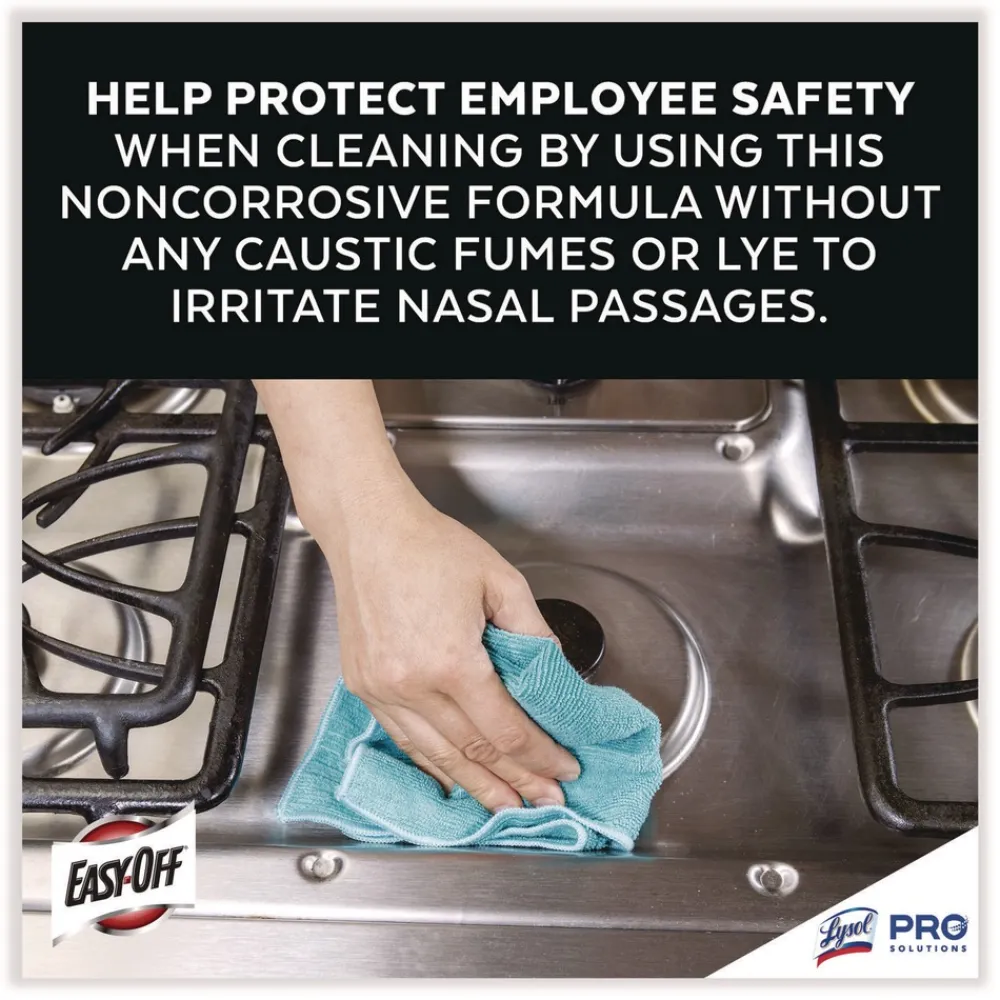 Cut through tough, baked-on grease in seconds and without the fumes using Professional EASY-OFF Fume Free Oven Cleaner. Simply spray, wait 30 to 60 seconds, and wipe away for an effective, efficient spot clean. Give cleaning crews a safe formula they can use during operating hours that dissolves tough baked-on grease, food spills, and common kitchen soils. Cover both daily upkeep and longer oven cleans with the fume-less formula, leaving behind only a pleasant lemon scent. Arm employees with a versatile cleaner that works on the interiors of ovens, oven doors, barbecue grills, stainless steel surfaces, broilers and broiler pans. Safe for self-cleaning ovens and requires no heat or gloves to use.