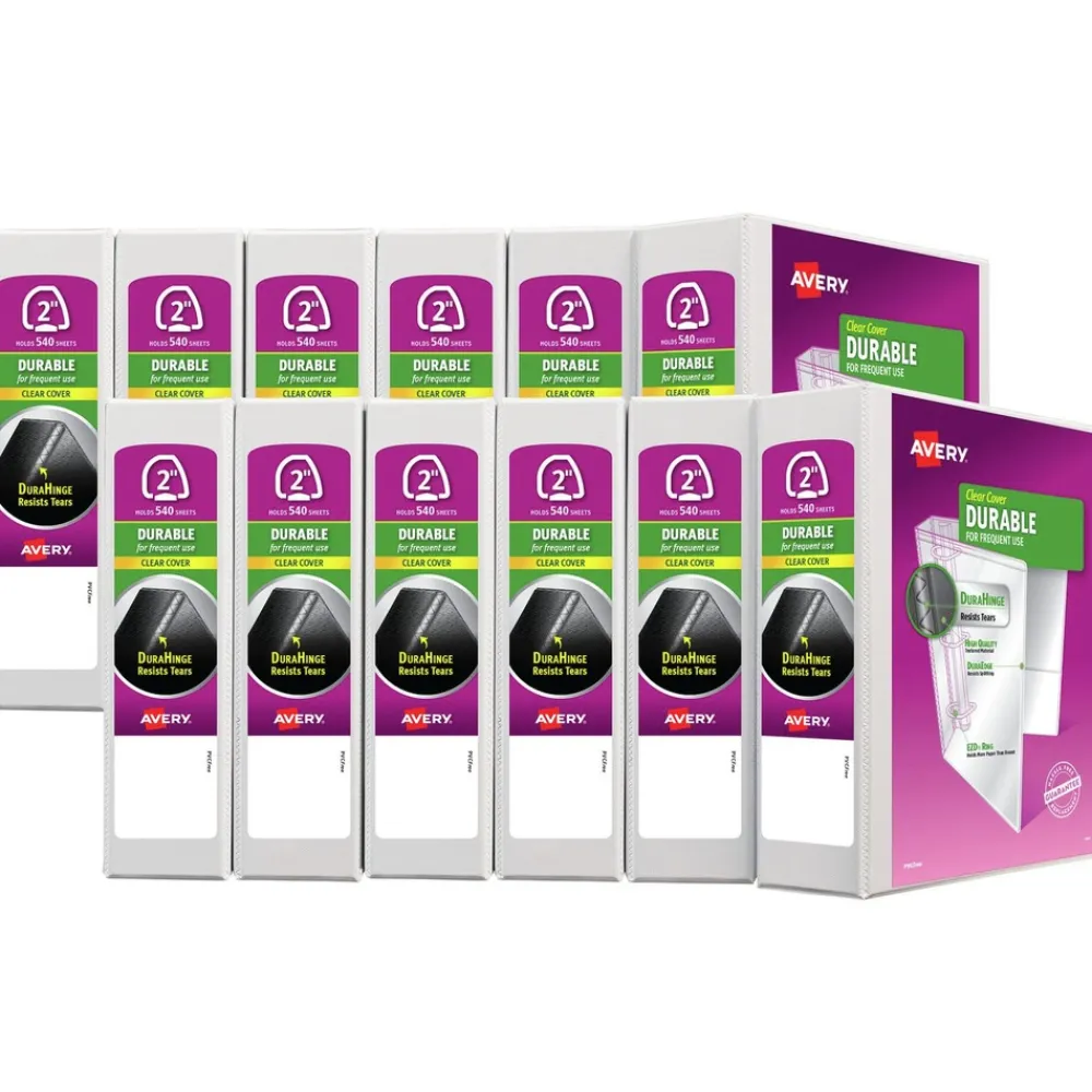 Avery 09501 3 EZD Rings 2 in. Capacity 11 in. x 8.5 in. Durable View Binder with DuraHinge – White (12/Carton)