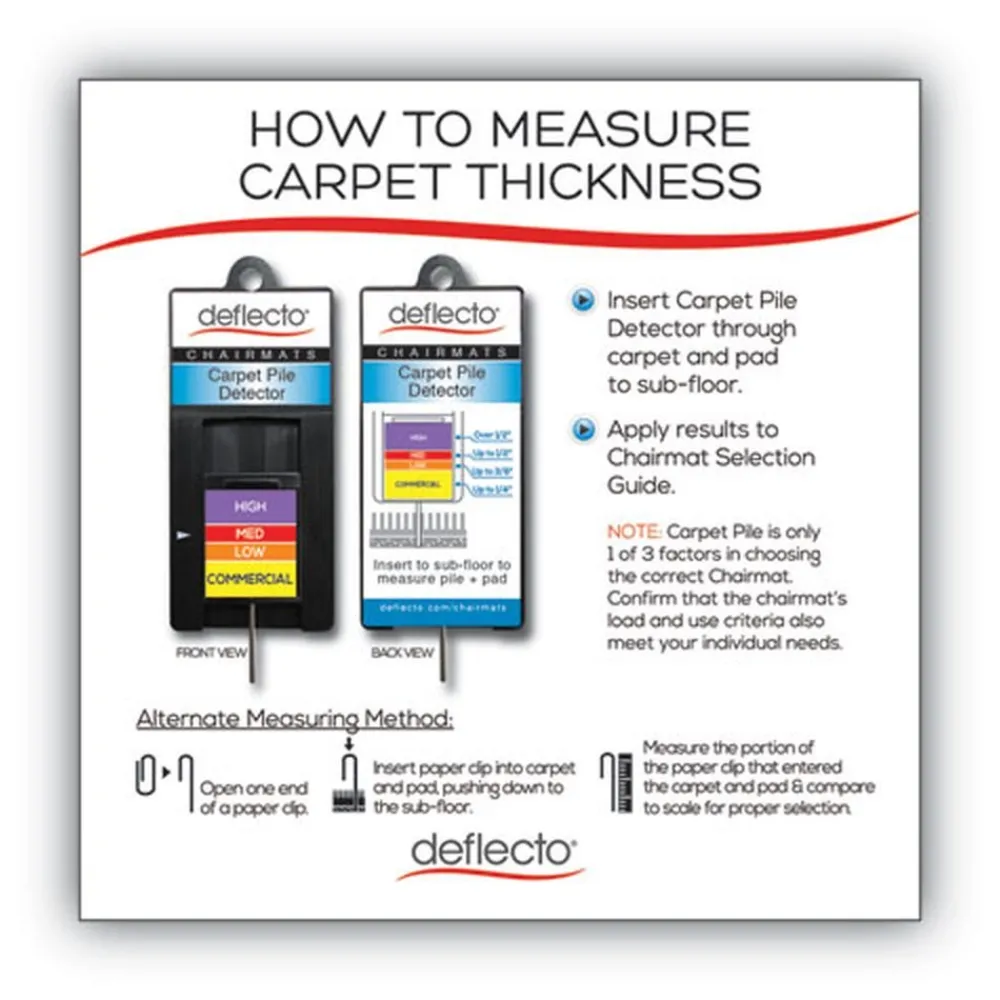 The SuperMat chair mat is a versatile choice for frequent use on carpets up to 1/2 in. thick and is well-suited for a variety of commercial and home office applications. Easy-glide rolling surface provides smooth chair movement to help minimize stress and strain on users back, legs and feet. Bottom studs grip the carpet securely and keeps the chair mat from moving. Deflecto’s Free and Clear non-orthophthalate, non-cadmium formula promotes a healthy work environment.