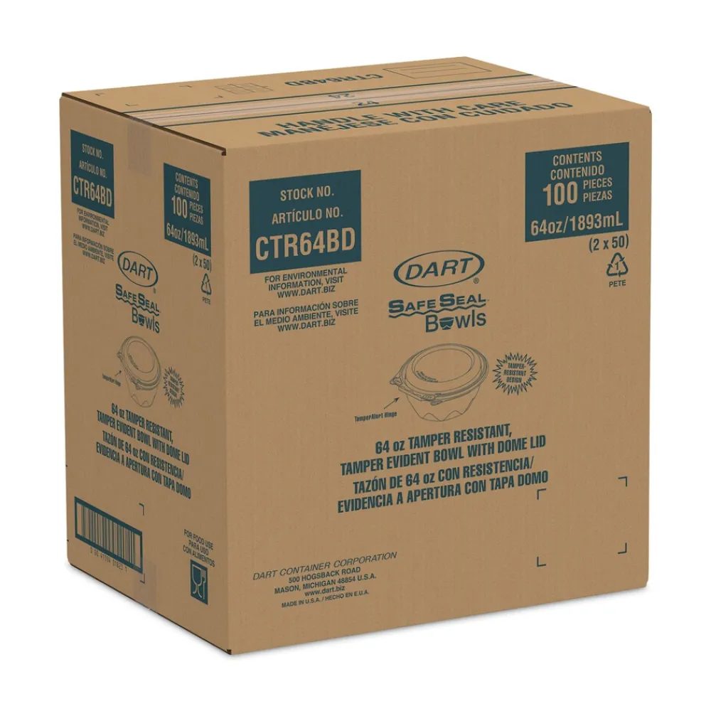 No matter what’s inside, these bowls keep your food safe, secure and looking good. Designed to prevent tampering without shrink bands or extra wrapping, SafeSeal bowls make sharing food easy. The complete perimeter seal preserves freshness and prevents leaks and spills. The tamper alert hinge has a visible seal that, if broken, makes it obvious the container has been opened. The specialty lid inhibits the ability to lift it from the base without tearing the hinge. Once the seal is broken, the now two-piece container is easy to re-close and continues to be leak-resistant. Make sure your food is the star of the show with this crystal-clear material. Merchandise and transport with confidence thanks to the stable stacking design.