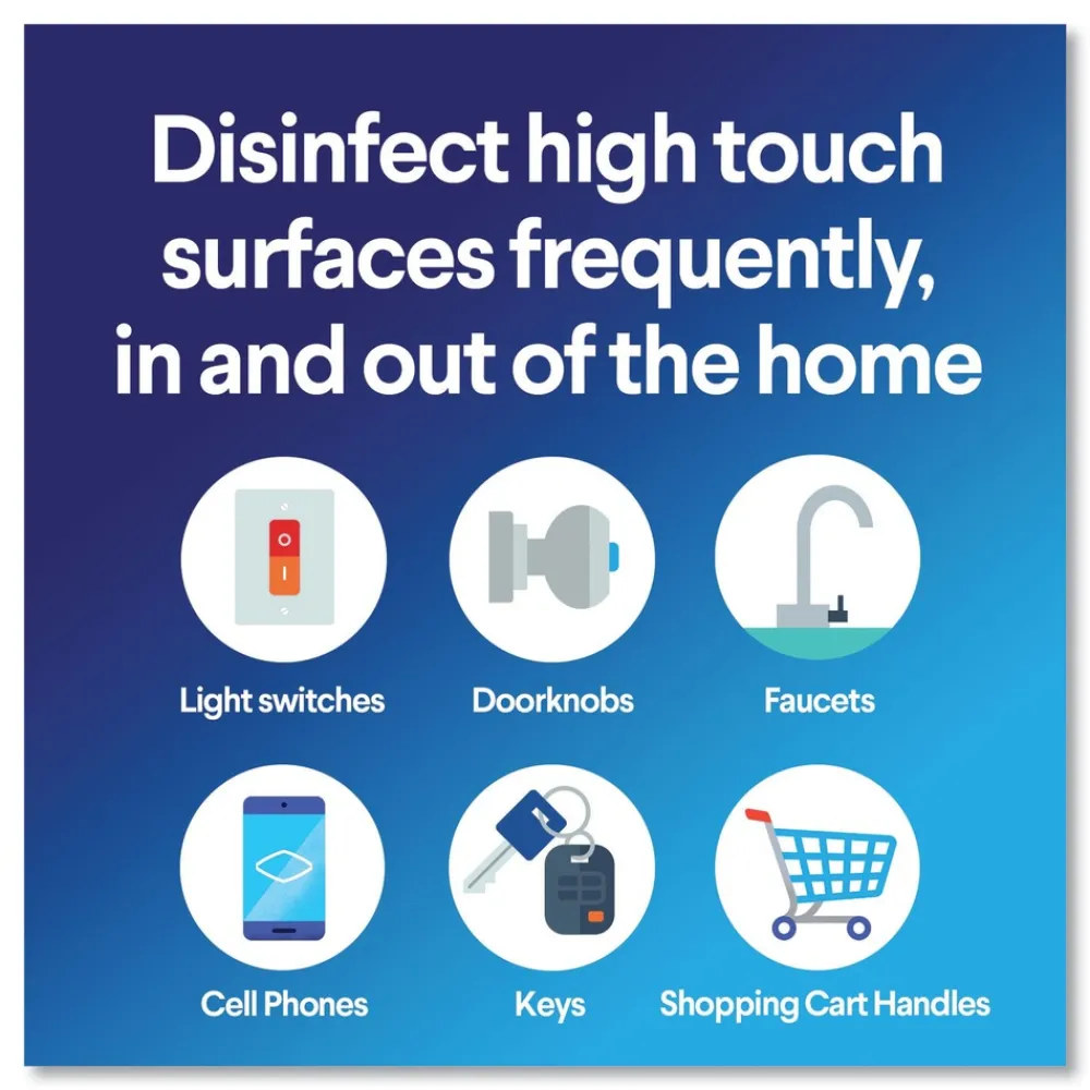 Clorox Disinfecting Wipes clean, disinfect and remove allergens leaving behind a pleasant scent. Disinfecting Wipes clean and disinfect with antibacterial power that kills 99.9% of viruses and bacteria that can live on surfaces, including COVID-19 Virus, staph, E. coli, MRSA, salmonella, strep and Kleb on hard, nonporous surfaces when used as directed. These all-purpose disposable wipes remove common allergens, germs and messes on surfaces like kitchen counters, bathroom surfaces and more. Disinfecting Wipes are safe to use on a variety of surfaces including non-food-contact surfaces in the home, office, daycares, schools, hotels, restaurants, and more. Use as directed. Allow product to air dry.