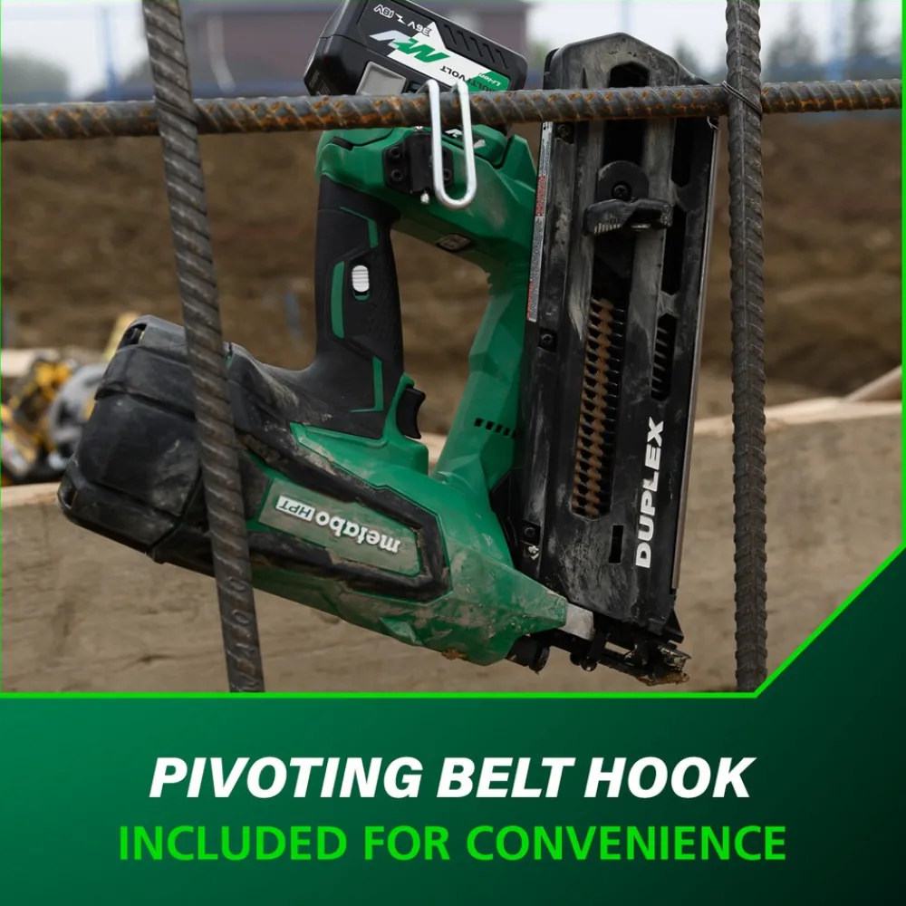The 36V MultiVolt Cordless Forming Nailer (NR3675DD) is here to revolutionize the concrete forming jobsite by providing a massive productivity boost versus hand-driving duplex/double-headed nails. Save money on the jobsite by saving valuable time! Move quickly while building concrete forms and scaffolding with the industry’s first battery-only cordless forming nailer solution. Metabo HPT’s unique Air Spring Drive System produces a similar feel to using a pneumatic nailer. Combined with the power of the MultiVolt battery, this cordless forming nailer works all day long, driving up to 16D duplex/double-headed nails. Drive up to 900 16D 3-1/2 in. duplex/double-headed nails per charge with the included 2.5 Ah MultiVolt battery. For bigger jobs, power up with a 4 Ah MultiVolt battery and drive up to 1,200 duplex/double-headed nails on a single charge!