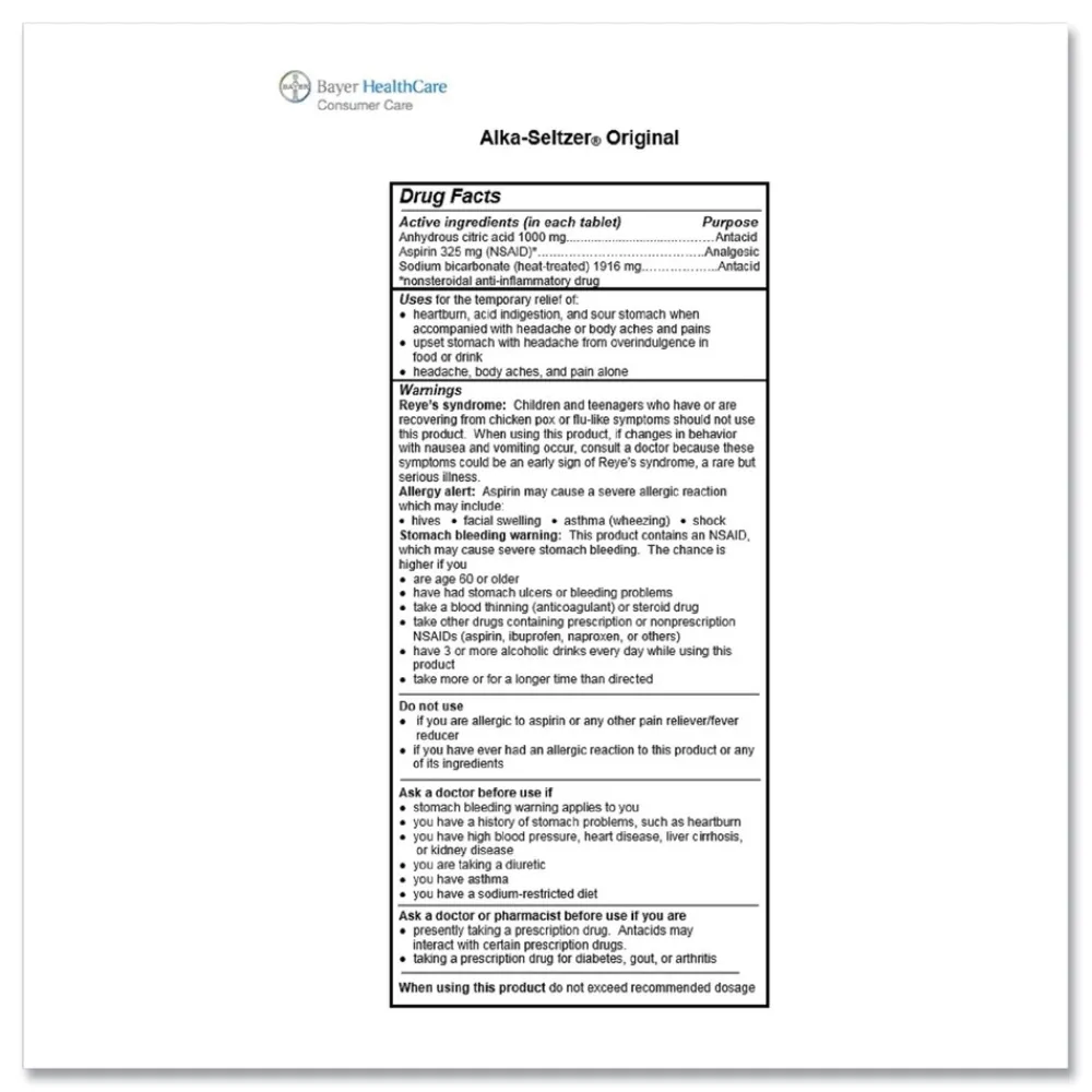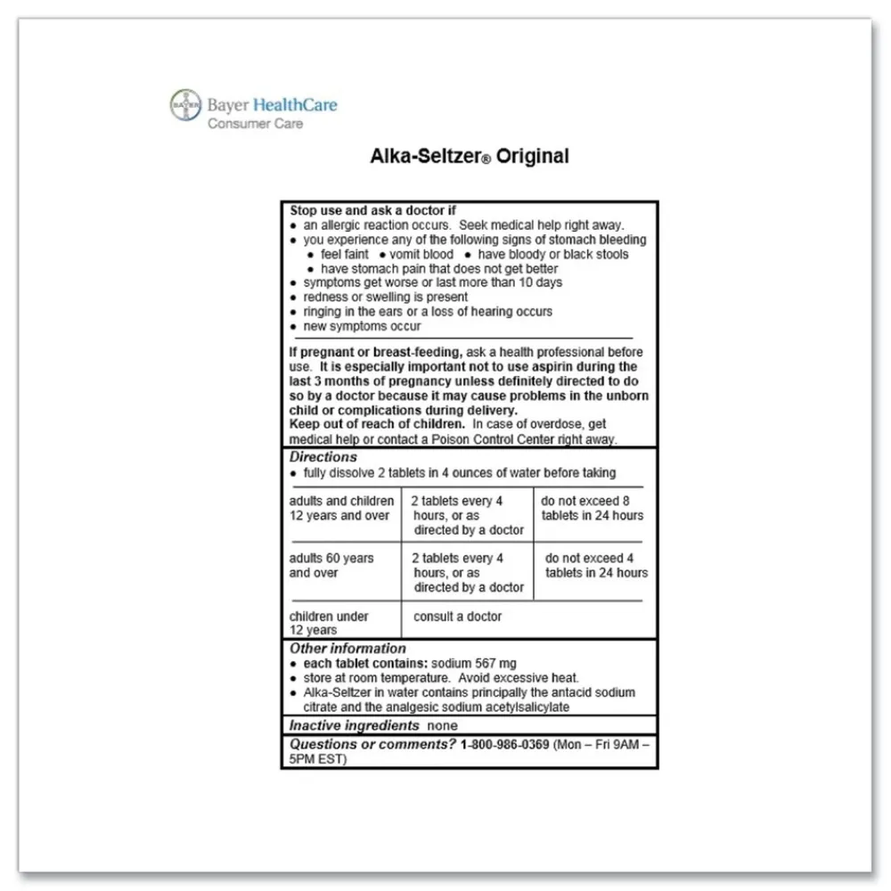 Alka-Seltzer 51060 Original Stomach Relief and Pain Relief Medicine (15/Box)