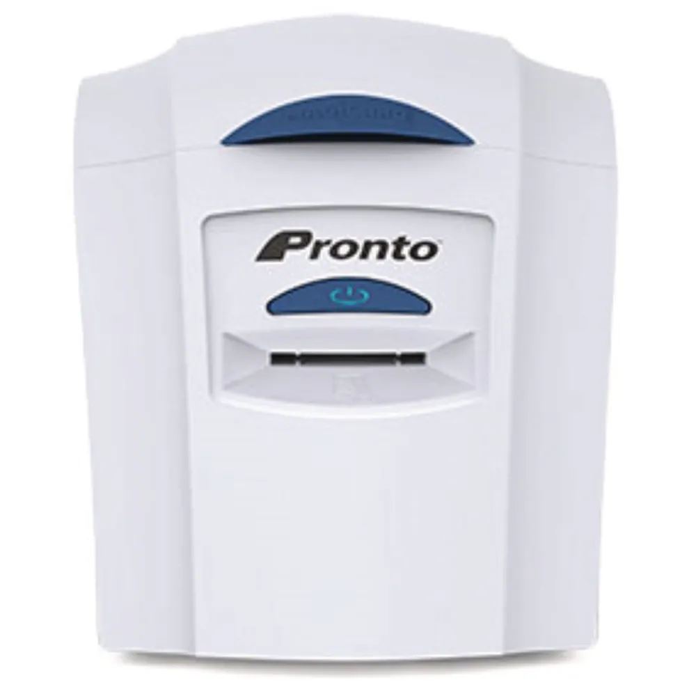 Magicard Pronto printer prints single-sided cards with print speed of 35 seconds for color, seven seconds for black
