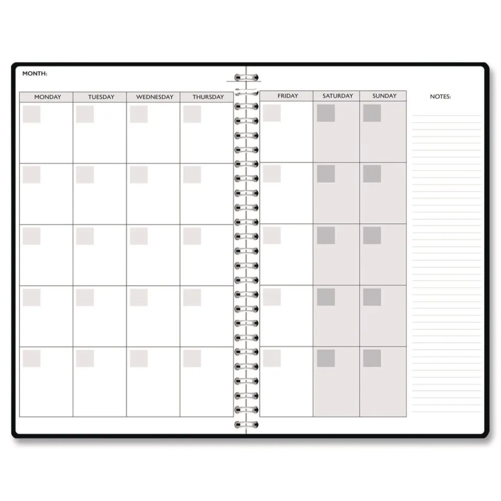 This non-dated weekly and monthly planner is ideal for uninterrupted easy planning. Both monthly and weekly two-page spread non-dated sections are to create your own planner dates. There is a large notes section to keep you organized and motivated. Also includes class schedule and note pages. The planner is spiral boundand features a two-piece cover that is waterproof, tear-proof and weather-resistant to withstand the daily use throughout the year. Made entirely of recycled materials.