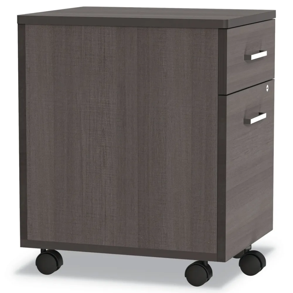 Fits under desk to conserve valuable space. Scratch- and stain-resistant wood grain laminate frame with durable edge. Full-extension locking metal drawers operate on steel ball bearing slides and accommodate letter- and legal-size files. Five-hooded dual-wheel casters for easy mobility. No assembly required.
