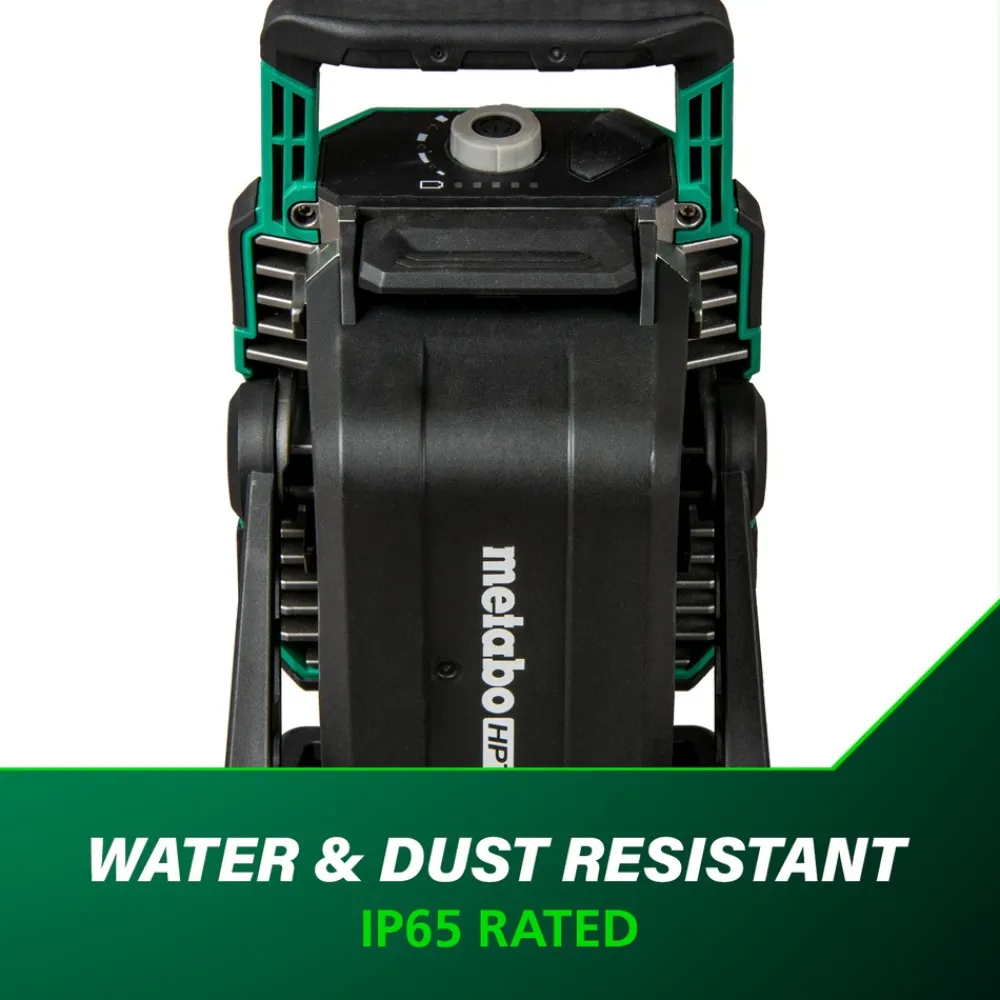 The new 18V Cordless 4000 Lumen LED Work Light (UB18DCQ4) will bring light with you no matter when or where the job takes you. Use the 18V Cordless LED Work Light to light up any size room thanks to its 15 brightness level settings. Plug in and stay connected – charge your smartphone or tablet via the built in USB port on top of the light. This light is uniquely designed with a keyhole slot allowing you to mount your light in the optimal position or install a tripod (not included) using the 5/8 in. threaded screw hole. This is the new go-to work light for any time or application. Get up to 20 hours of runtime on the 5 Ah battery BSL36A18 (not included). This 18V Cordless LED Work Light has the features that the pros require such as a variable light setting, IP56 dust and water protection, USB Port, and mounting options. It’s backed by Metabo HPT’s 2-year warranty for peace of mind. The 18V Cordless LED Work Light is part of the ever-expanding MultiVolt System of 18V and 36V power tools from Metabo HPT. GO lighter with 18V batteries or GO longer with the unique MultiVolt battery that works on both 18V and 36V tools to double your runtime for more power on the GO.