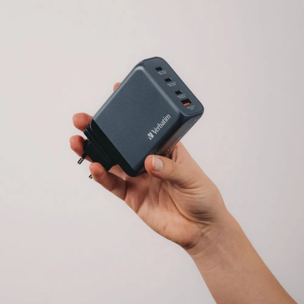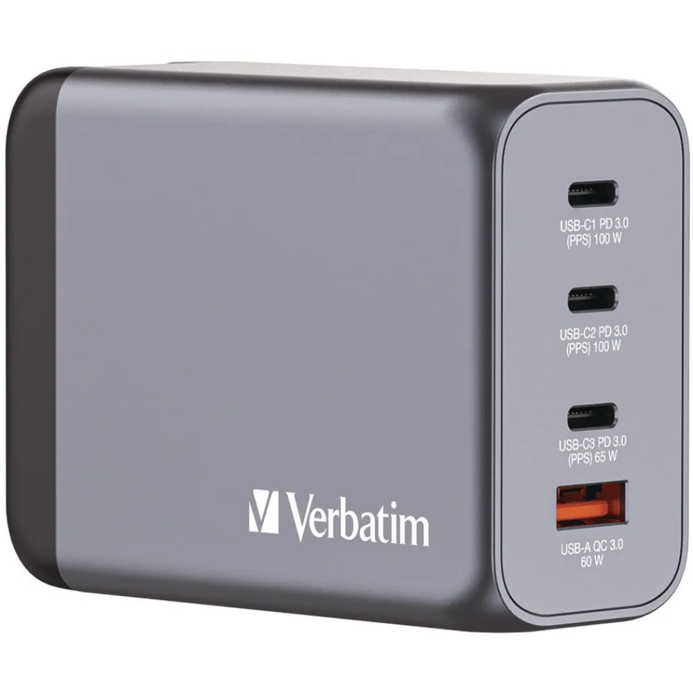 Verbatim 32204 200 Watts 4-Port GaN Wall Charger – Black/Gray