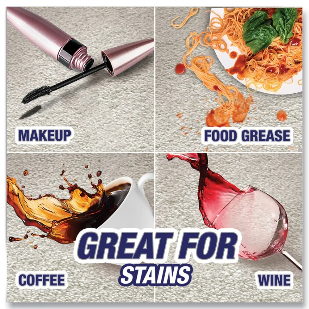 Specially formulated to penetrate deep to break down and lift out all types of tough stains and odors from carpets and rugs. Permanently removes the toughest and set-in stains for newer looking carpet. Helps keep stains from reappearing, works on a wide variety of everyday stains, and leaves your carpet soft and fresh smelling. This product works on tomato sauce, salad dressing, dirty motor oil, vegetable oil, make-up, red wine, food grease, pet stains, coffee, mud, dirt, cola, tea, grass, fruit juice and more.