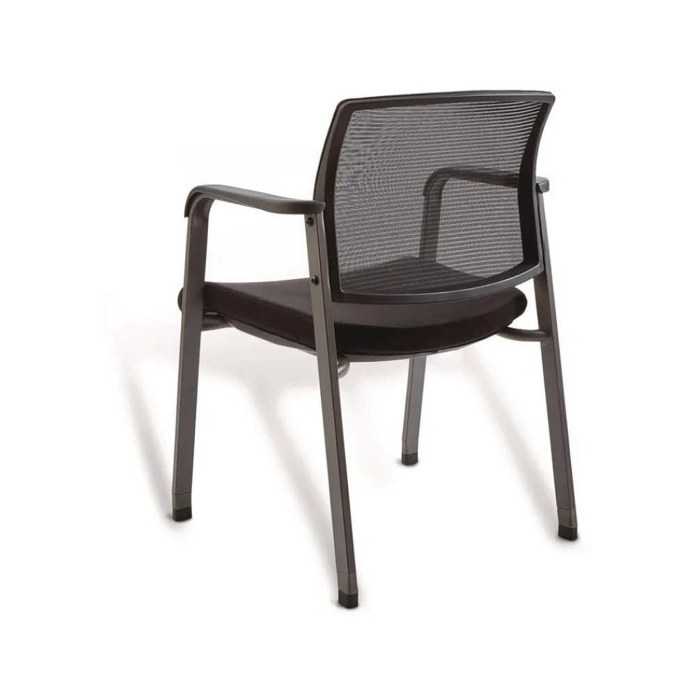 Enhance the look of your lobby or reception area with this sleek guest chair. Its sturdy metal frame ensures reliable support and stability. The chair features a breathable mesh back that promotes airflow for added comfort, while the contoured padded seat offers all-day ease. Designed with curved armrests for improved upper-body support, this chair meets standards for safety and durability.