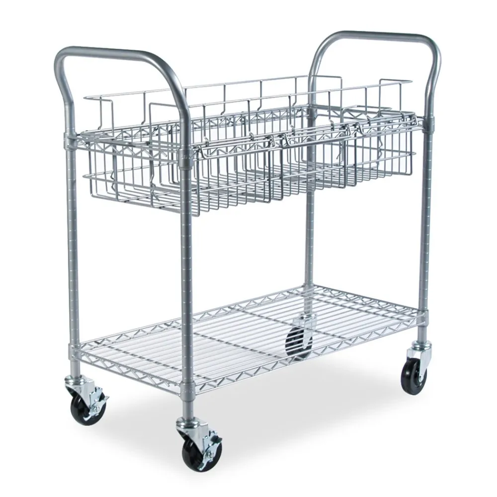 39 in. x 18.75 in. x 38.5 in. 1 Shelf 1 Bin Dual-Purpose Metal Wire Mail and Filing Cart – Metallic Gray – 5236GR