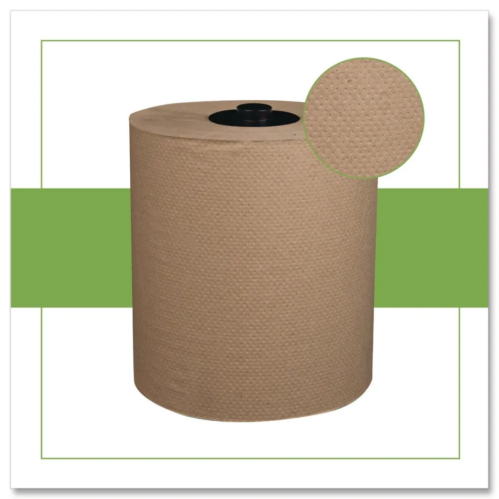 Kraft hardwound roll hand towels are ideal for placement at sinks in restrooms, classrooms, offices and more. Constructed from recycled cardboard, Kraft towels offer resistance and absorption for effective hand drying at a low cost.