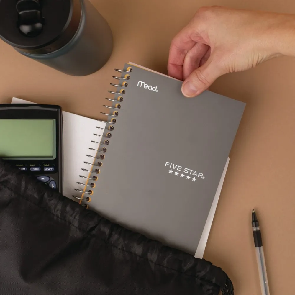 Lasts all year. Guaranteed. Durable, water-resistant poly covers protect your notes all year. Reinforced, tear-resistant divider pockets keep your loose sheets together. Spiral Lock wire binding prevents coil snag, and high-quality paper provides excellent ink-bleed resistance. Easily inserts into any three-ring binder (sold separately). Scan, study and organize your notes with the Five Star Study App. Create instant flashcards and sync your notes to Google Drive to access them anywhere from any device.