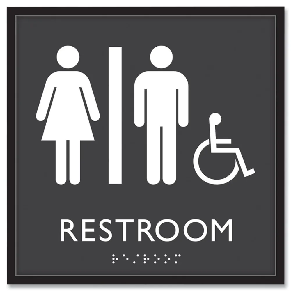 8 in. x 8 in. Unisex Accessible Restroom Plastic ADA Sign – Clear/White – 66911