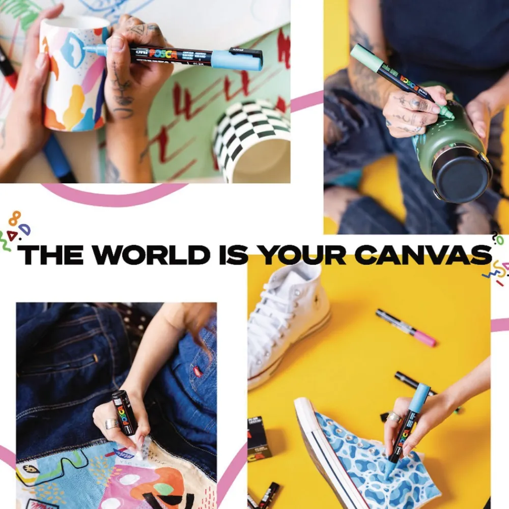 POSCA marker can be used on almost any surface you can dream up: paper, glass, cardboard, wood, porcelain, metal, textiles, ceramics, plastic and much more. The felt bullet tip marker is versatile, which allows you to produce neat and precise lines. The alcohol- and solvent-free opaque paint covers surfaces well, is blendable, dries quickly and can be layered when dry. Ideal for beginners and professionals alike, this marker is a fluid and fun choice for retail windows, car lots, art, craft or decor. The tips can be rinsed with water to keep marker intact, allowing you to blend without fear of ruining your marker.