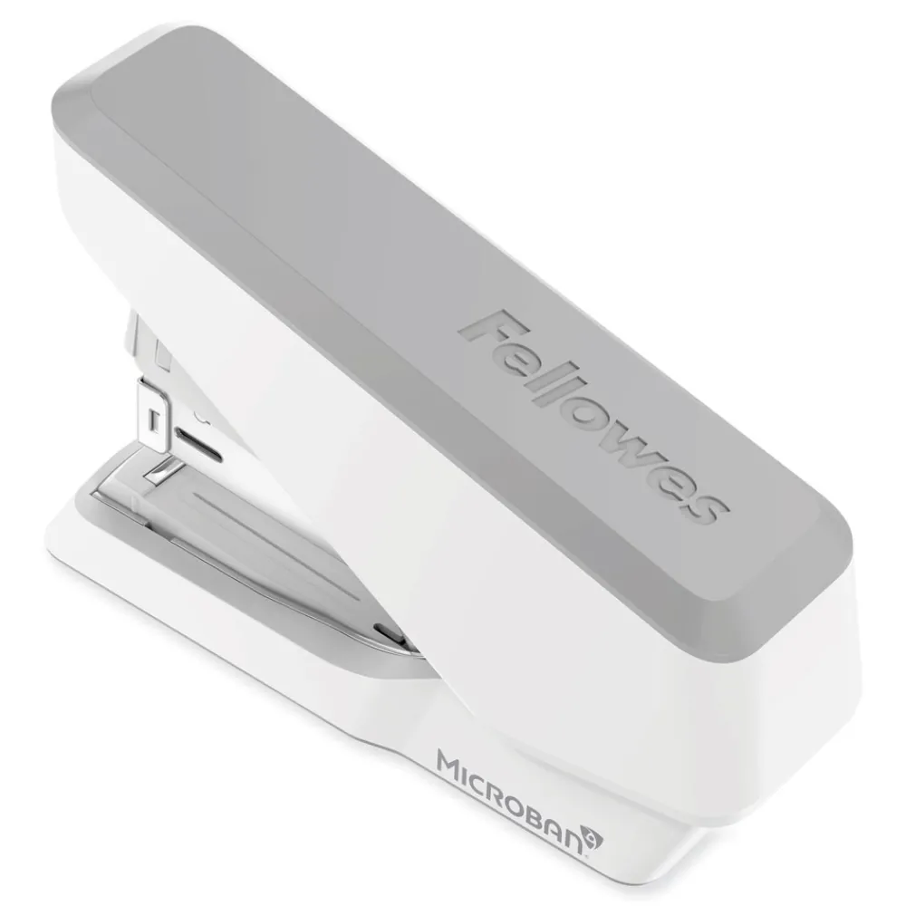 Fellowes Mfg Co. 5014301 LX860 EasyPress 40-Sheet Capacity Half Strip Stapler with Antimicrobial Protection – Gray/White