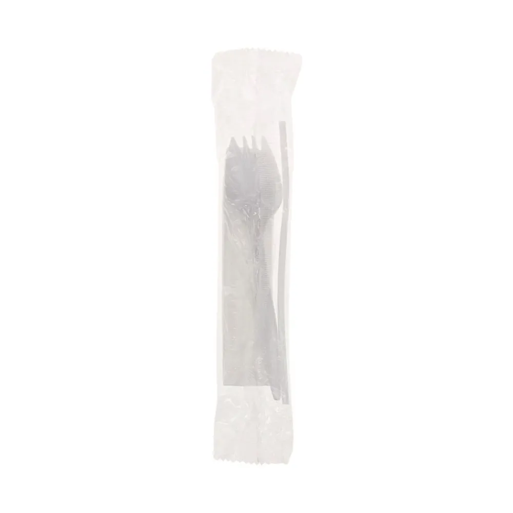 (1000/Carton) Mediumweight Plastic Fieldware Cutlery Napkin/Spork/Straw Kit – White – FKQWSCHLCH