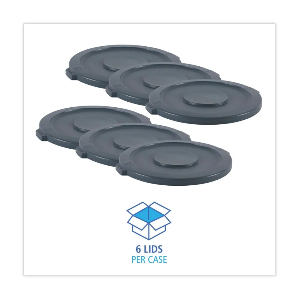 Plastic Round Flat-Top Lid for 32 Gallon Waste Receptacles – Gray – 32GLWRLIDG
