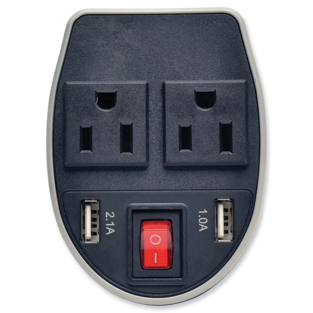 Features AC outlet(s), 2.1A USB port and 1.0A USB port