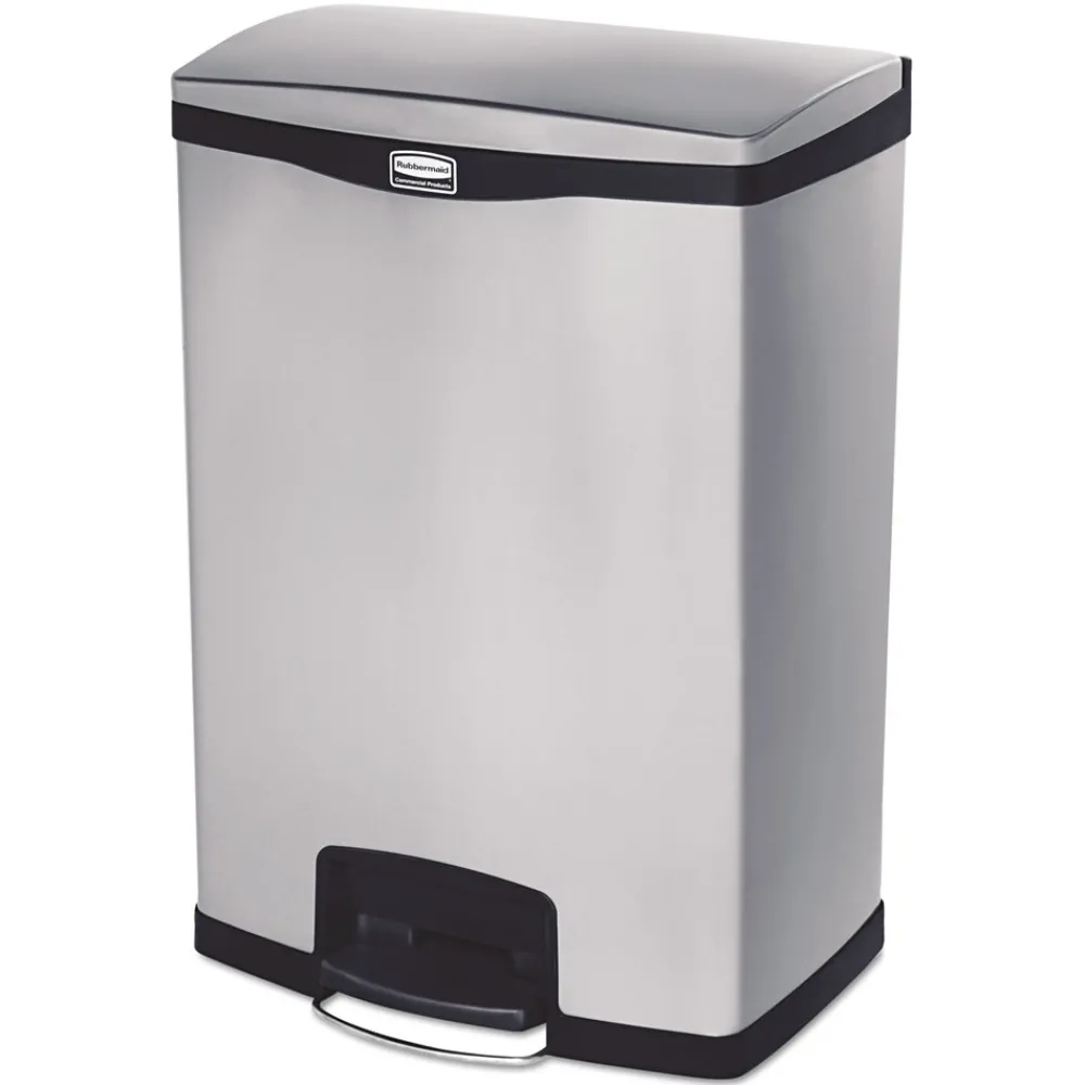 Rubbermaid Commercial 1901999 Slim Jim 24-Gallon Front Step Style Stainless Steel Step-On Container – Black