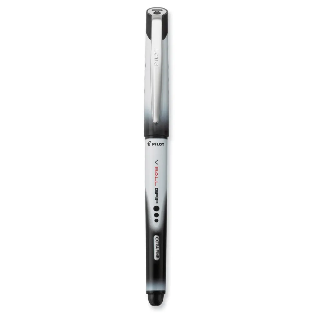 Pilot 35470 VBall Grip Liquid Ink Extra-Fine 0.5 mm Rollerball Pen – Black Ink/Black/White Barrel (1-Dozen)