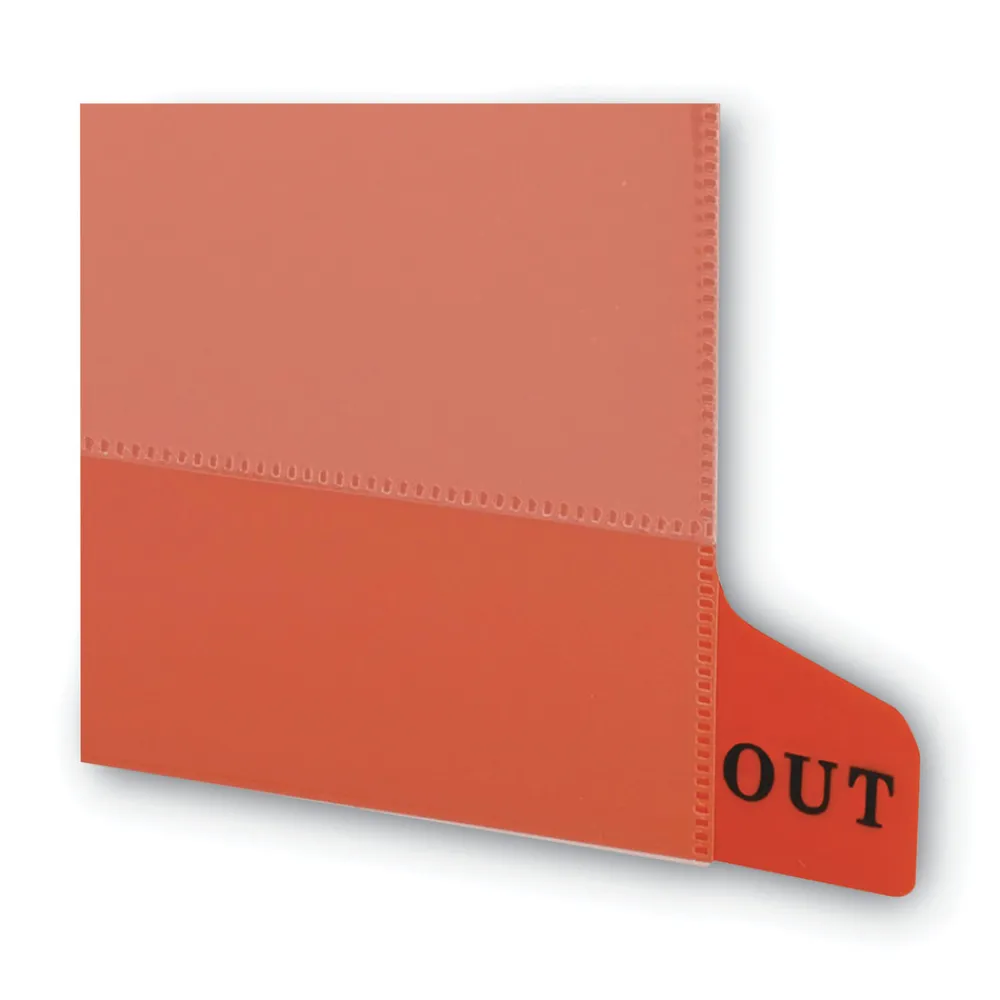 (25/Box) 1/3-Cut End Tab Out 8.5 in. x 11 in. Colored Poly Out Guides with Pockets – Red – 61950