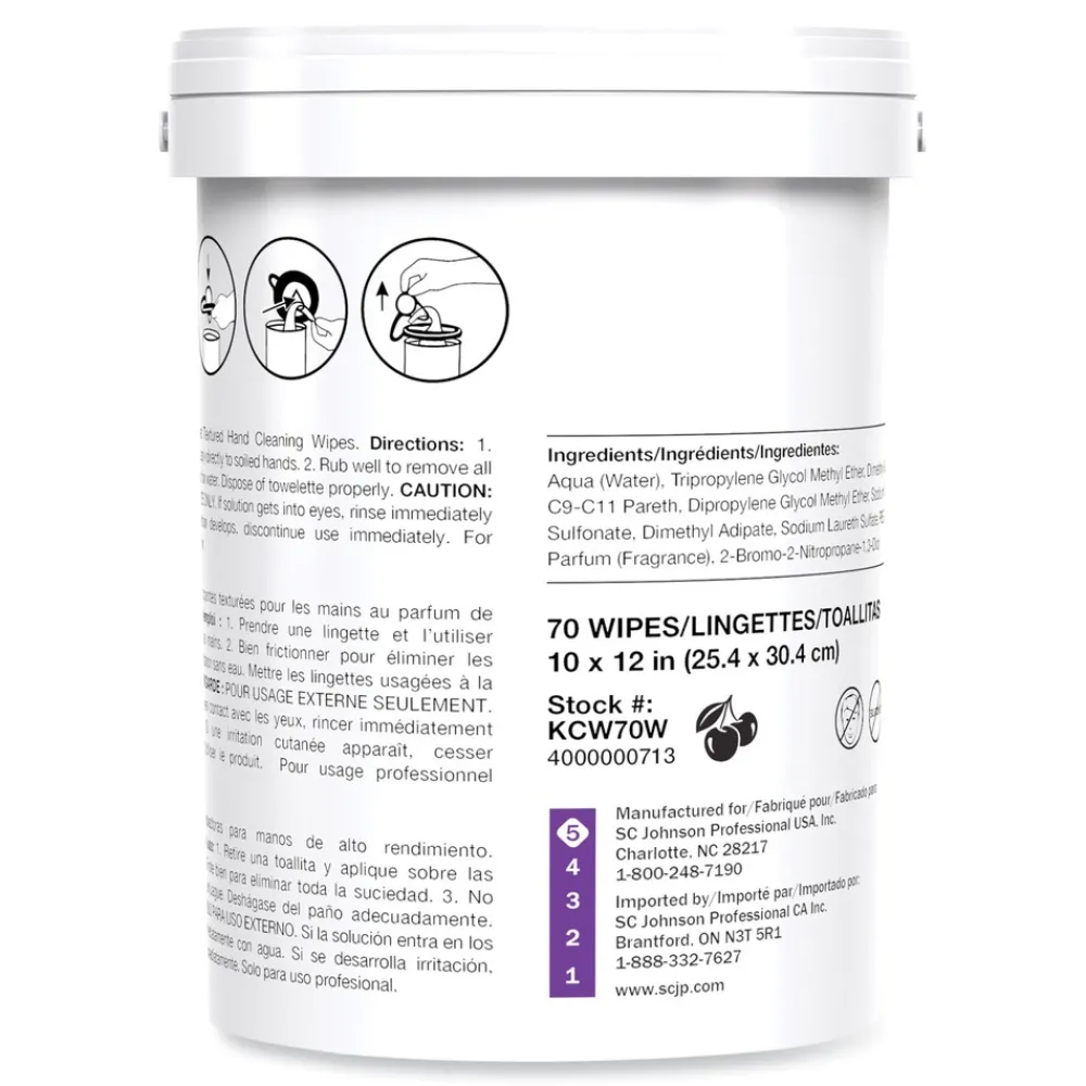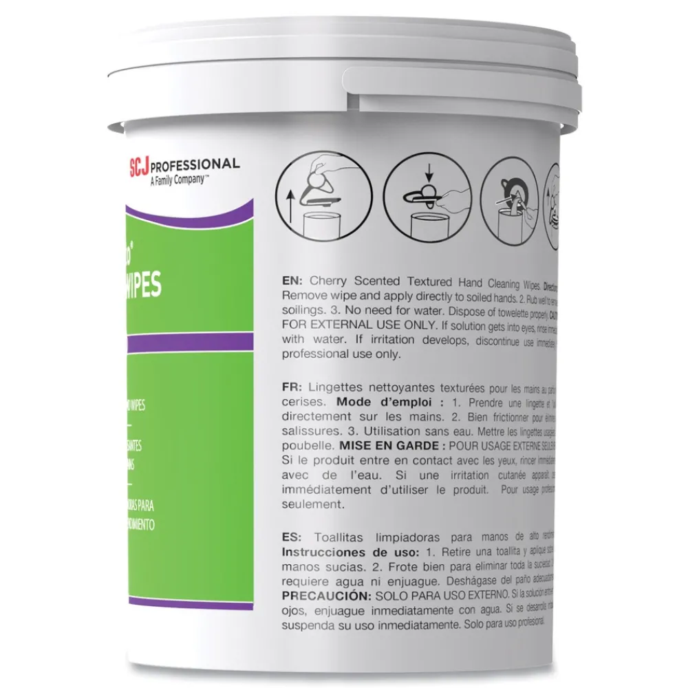 Tough, dual-sided extra large wipes with cherry fragrance for use without water. Powerful, solvent-based cleaning ingredients remove a broad spectrum of contaminants. For use at the work station and for mobile workers to remove oil, grease, paints, sealants, resins and general grime. Contains no VOC-Regulated Ingredients—no use limitation throughout all 50 States. Silicone-free, this product will have no adverse effect if in contact with surfaces prior to the application of paint or surface coatings.