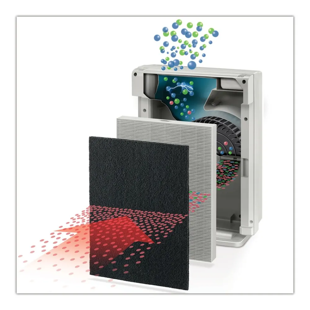 Captures mold spores, pollen, dust mites, most airborne microbes, allergens and cigarette smoke.