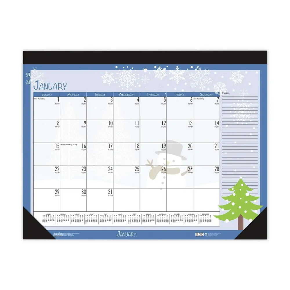 18.5 in. x 13 in. 12-Month (Jan-Dec) 2026 Recycled Desk Pad Calendar – Illustrated Seasons Artwork/Black Binding/Corners – 1396